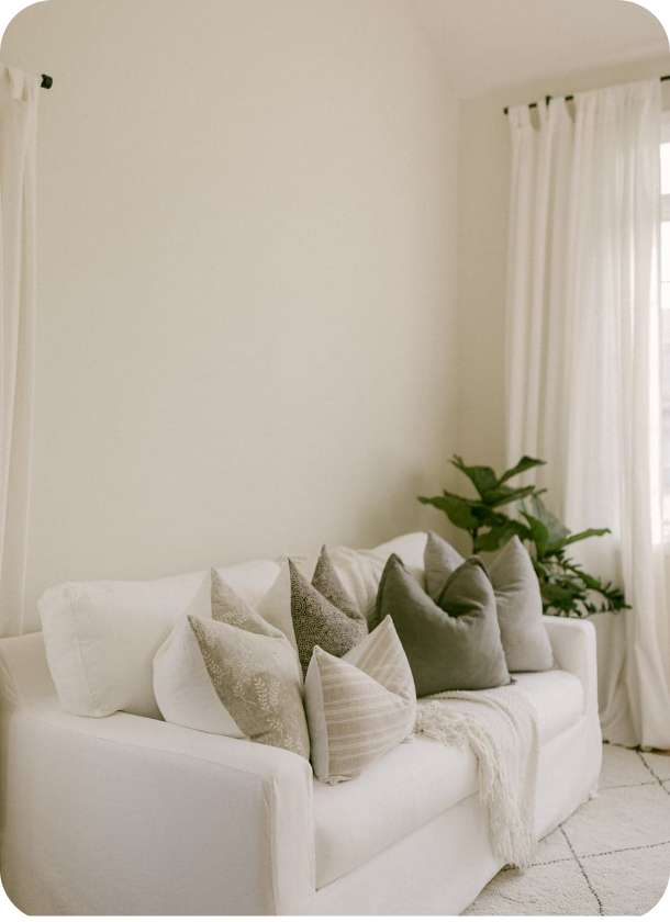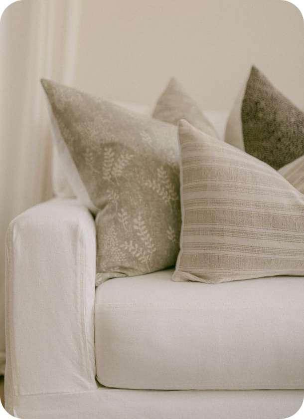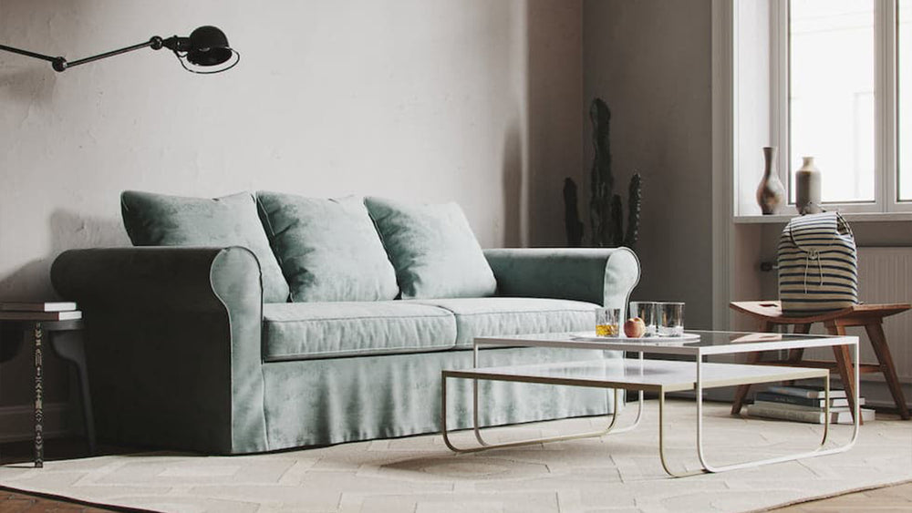 Hier ist die Rahmenabdeckung in der Regel ein einzelnes Stück, das traditionell hergestellt wird, um die Sofabeine vollständig abzudecken und ihm einen entspannteren Look zu verleihen.