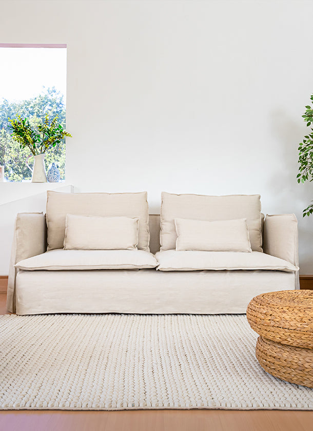 Reiner Leinen-Natur-Slipcover in enganliegender Passform