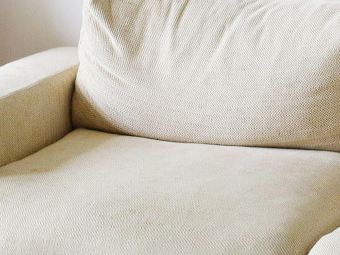 Close-up of a sofa couch showcasing the texture of the slipcover