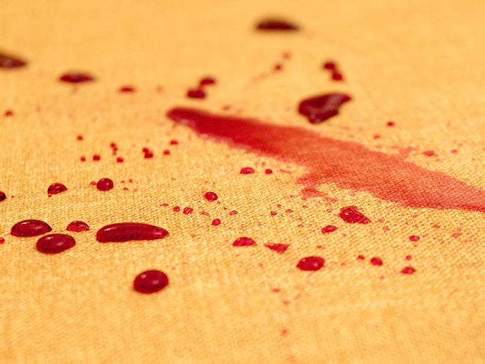 Close-up of spilled milk on a sofa with spill-resistant Teal Performance Weave slipcover