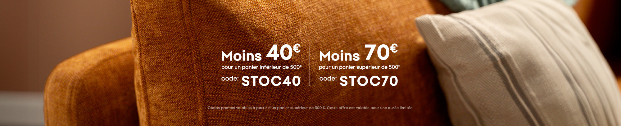 Utilisez le code STOC40 pour 40 € de réduction ou STOC70 pour 70 € de réduction lors du paiement.