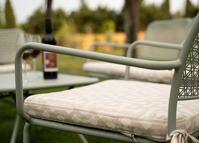 Coussin de chaise IKEA FRÖSÖN/DUVHOLMEN en Sunbrella Fretwork Flax